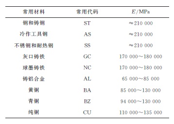 表1 不同彈性模量對應的材料選項